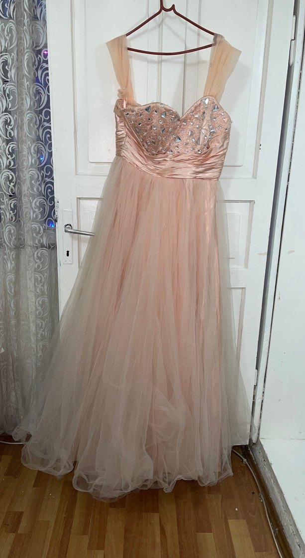 Pudra Pembe Uzun Straplez Abiye Elbise