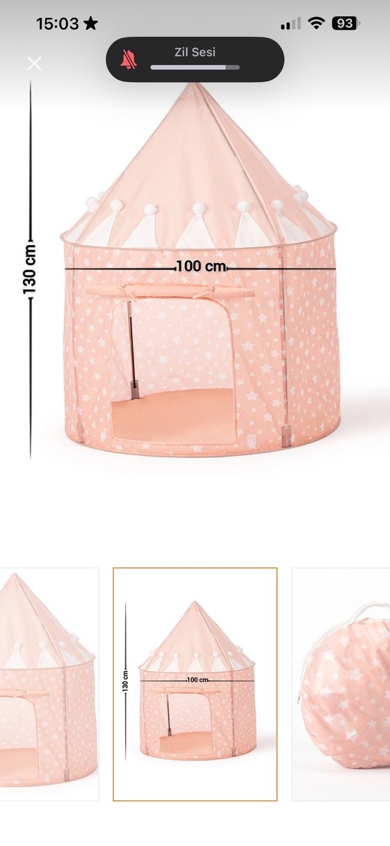 Welgro marka Yumuşak kumaştan yapılmış, pastel pembe renkli, yıldız desenli çocuk oyun çadırı. Zeminindeki yastığı ve ek üç tane şekilli yastığı hediye edeceğim. Başka fiyat kabul etmiyorum çünkü sırf zemindeki yastık 1000tl. Çadır normalde yamuk değildir. İçindekilerden dolayı öyle çıkmış sadece küçük çay lekesi ve kalem lekesi var bir de iki ponponu çıkmış. Pakete onu da ekleyeceğim yapıştırılabilir. Katlanınca küçücük oluyor. Kurulum kağıdı bile hala duruyor.