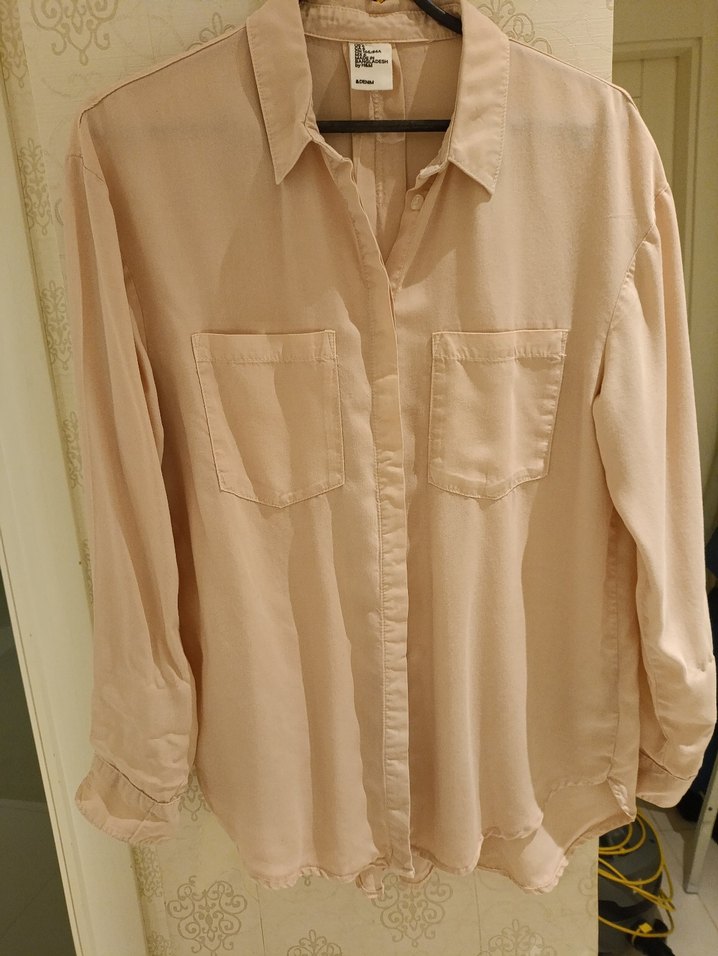 Pudra pembesi renkli pamuklu yumuşak kumaştan, düğmeli ve uzun kollu, cep detaylı rahat kesim gömlek. Günlük kullanıma uygundur. Etikette 36 yaziyor ama 38 e de uymlu rahat kalıp.