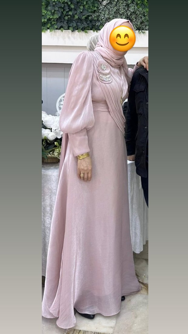 Pudra pembesi uzun tesettür abiye elbise
