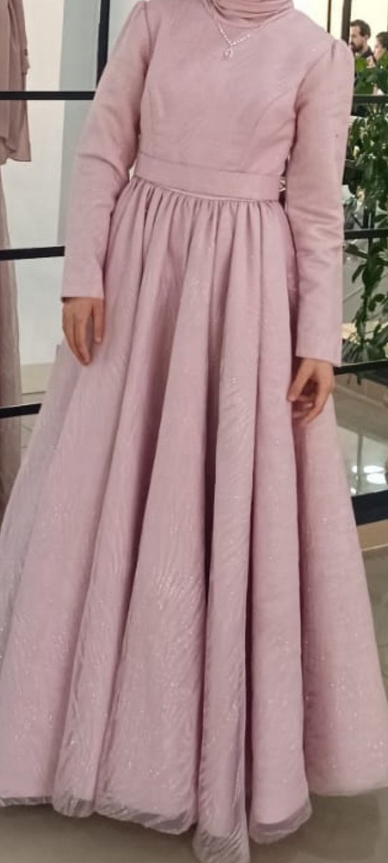 Pudra renkli, uzun kollu ve tek renk pileli tasarıma sahip bu uzun abiye elbise, modern klasik tarzıyla düğünler için uygundur. Rahat kesimi şıklık katıyor. daratma işlemi yapılmıştır açılabilir