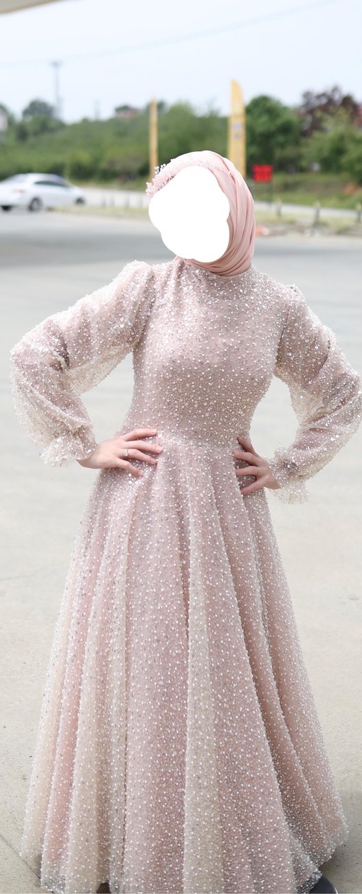 Pudra renkli, yüksek yakalı ve uzun kollu bu fitted nişan elbisesi drapeli detaylara sahip. Vintage tarzı ve hafif ışıltısı düğünler için klasik zarafet sunar. ✨şalı ve tacı ile verilecek arka ipi kayıp bulamadık abiyecilerden tedarik edilebilir