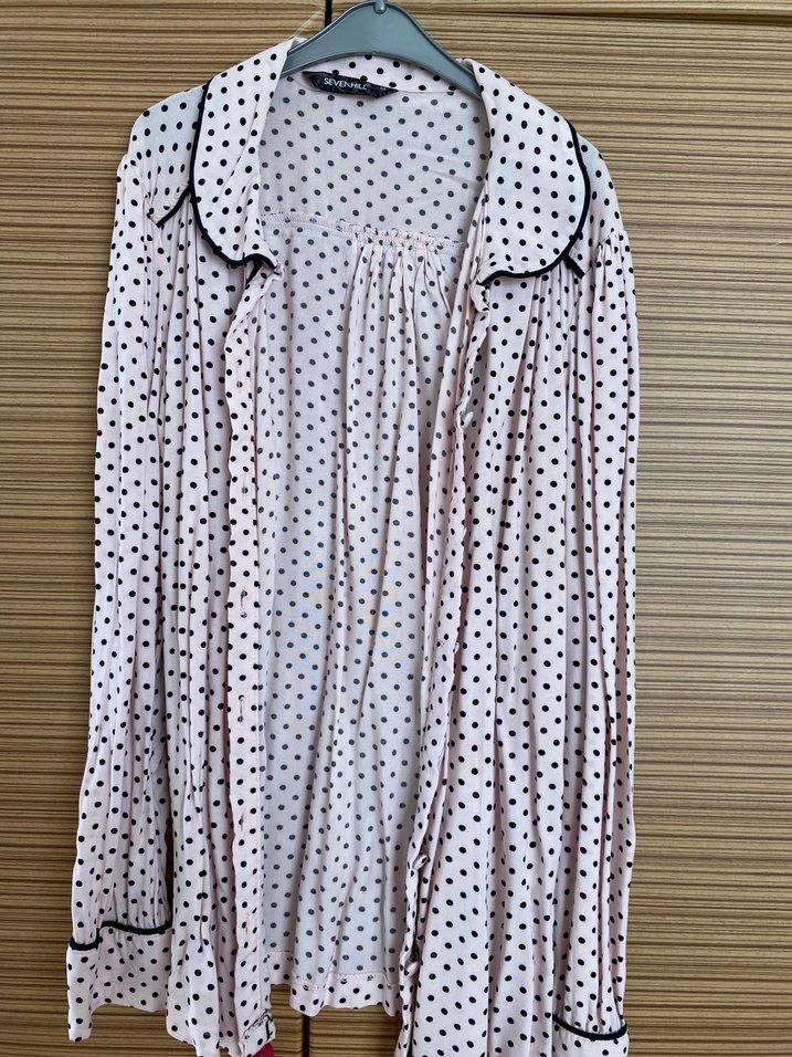 Pudra renkli viskon kumaştan, bol kesim, uzun kollu, bebe yaka ve düğmeli önüyle puantiyeli bohem tarz gömlek. Günlük kullanıma uygundur.