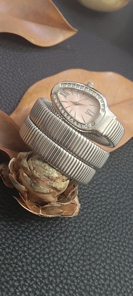 Pudra Rengi Bvlgari Model Yılanlı Kadın Saat