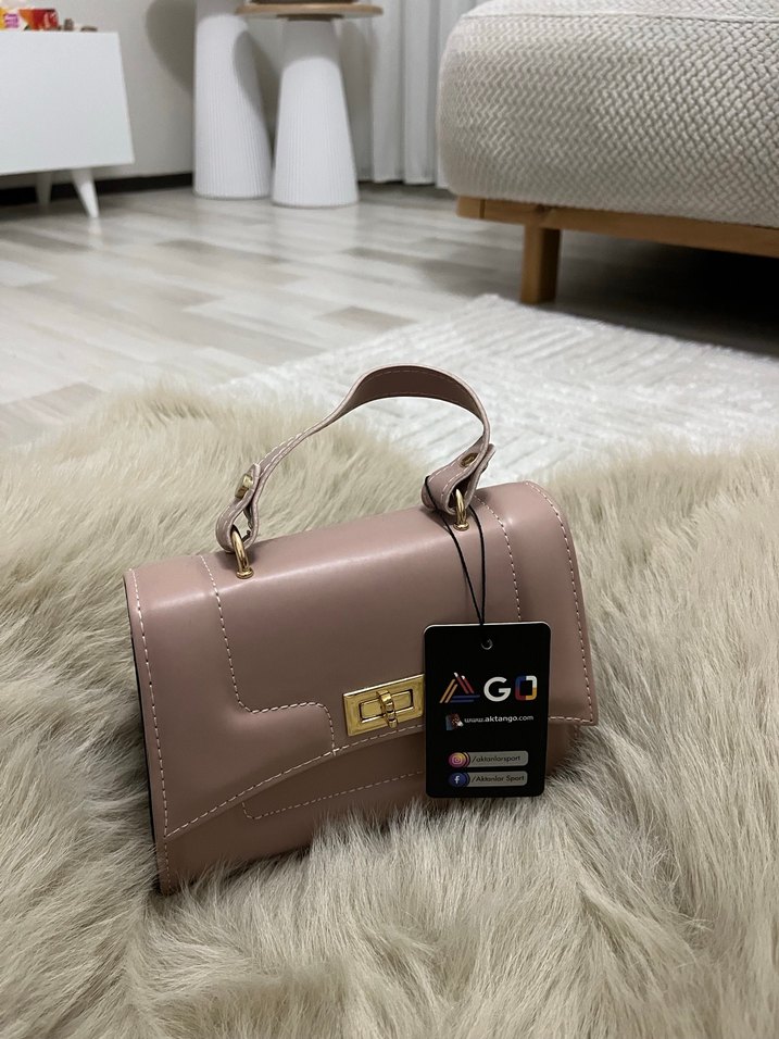 Pudra renkte, deri malzemeden yapılmış kadın çantası, Modern klasik ve minimalist tarzda, trend günlük kullanıma uygun.
