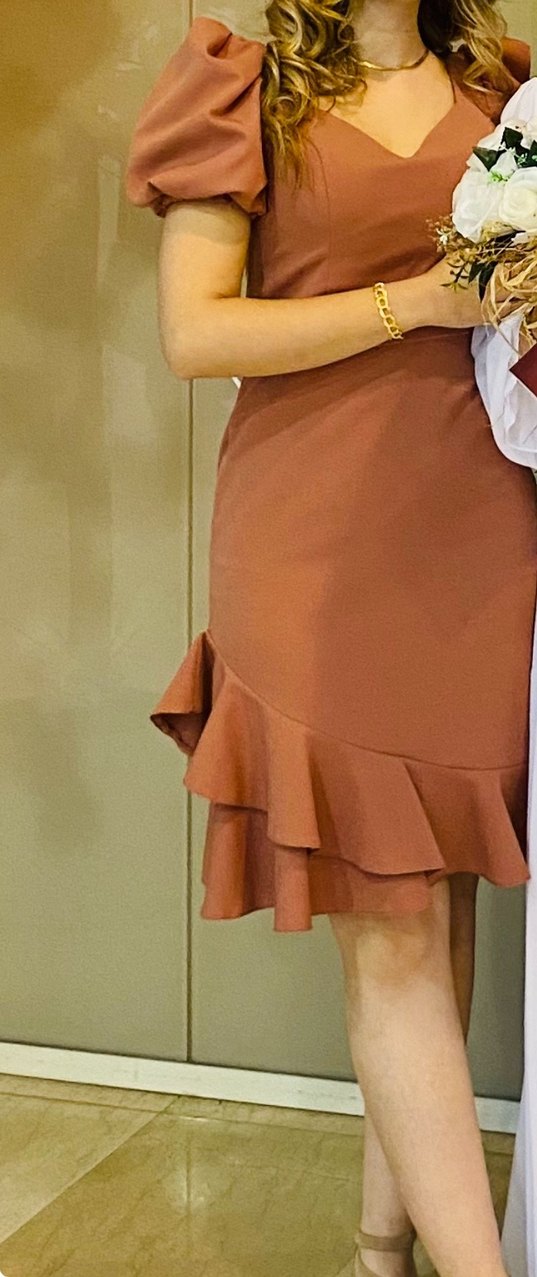 Volan detaylı, midi boy, pudra renkli, oturan kesimli etek.sentetik dokulu kumaştan yapılmıştır. Bana küçük geldiği için satıyorum