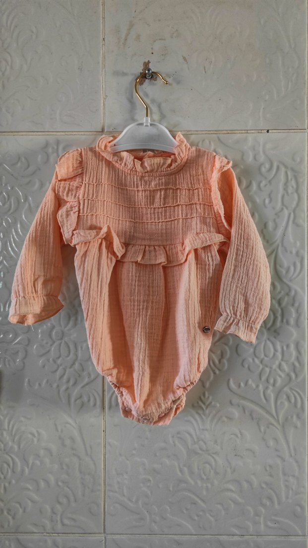 Yumuşak dokulu, nefes alabilen müslin kumaş kız bebek tulum. Pudra rengiyle çok şık duruyor. Uzun kollu, altı çıtçıtlı olduğu için giydirip çıkarması çok pratik. Günlük kullanım ve özel günler için uygundur. • Az kullanılmış / tertemiz • Rahatsız etmeyen kumaş • Mevsimlik (ilkbahar–sonbahar)