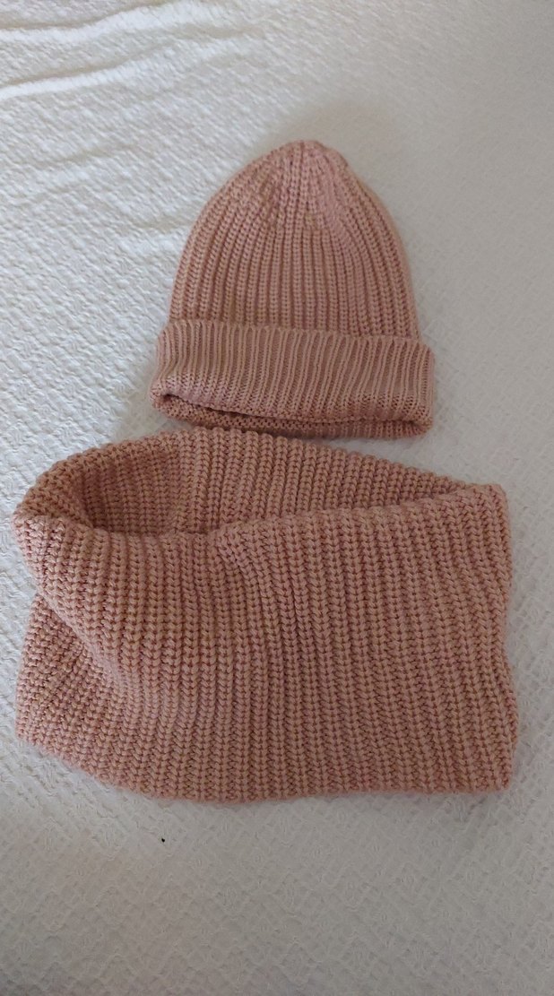 Yumuşak örgü kumaştan yapılmış pudra renkli yetiskin bere ve boyunluk seti. Düz ve pastel renkte, sade ve rahat bir tasarıma sahiptir.