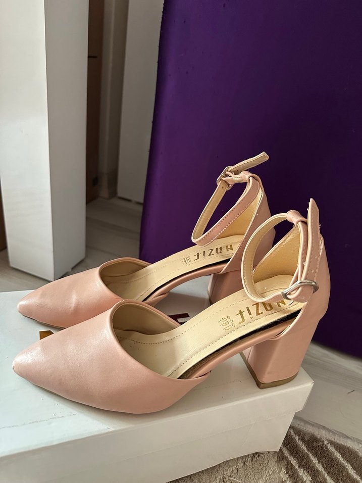 Pudra rengi, tokalı kadın topuklu ayakkabı. Minimalist tasarım ve yumuşak kauçuk malzeme kullanılmıştır. Günlük kullanıma uygun, çağdaş stile sahiptir. görsellerdeki giib