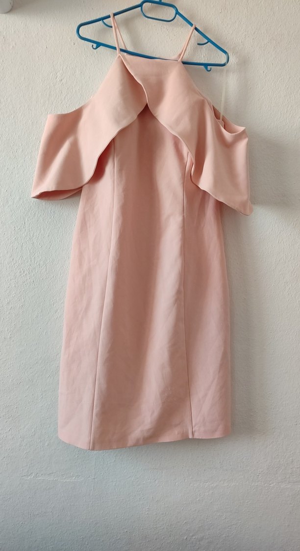 Pudra renkli, ip askılı drapeli yaka detaylı vücuda oturan midi elbise. Minimalist ve çağdaş tasarımıyla günlük kullanıma uygundur. Askılarından itibaren 99 cm