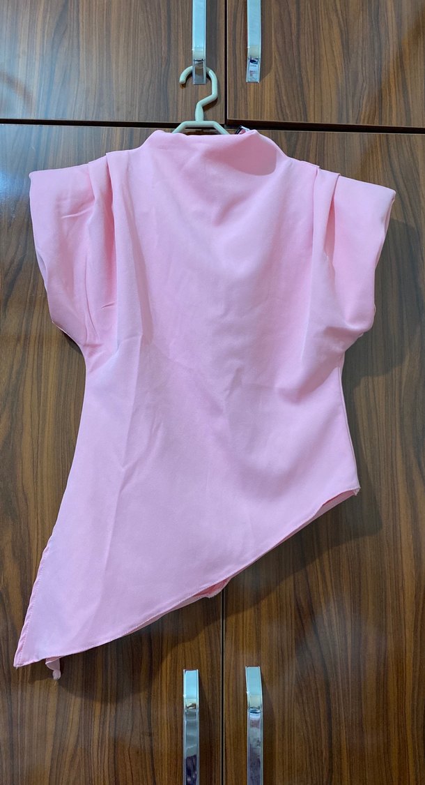 Pudra renkli, V yakalı ve drapeli tasarıma sahip kolsuz kadın bluz. Rahat kesimi ve normal midi boyu ile günlük kullanıma uygundur.