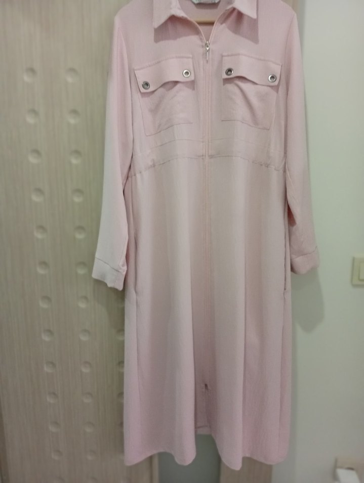 Pudra renkli, uzun kollu ve yakalı bu elbise, düğmeli detaylara sahip. Rahat kesimi ve yumuşak sentetik kumaşıyla günlük kullanıma uygun. esnek kumaş