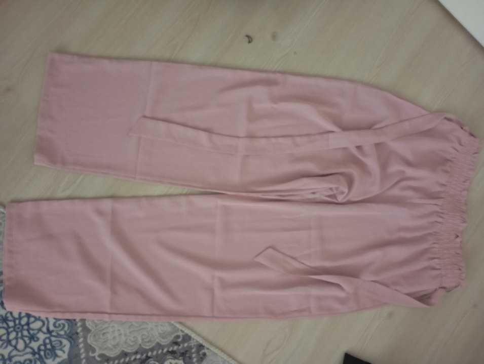 pudra renkli polyester 42 beden uyumlu yazlık pantolon kuşaklı cepsizdir