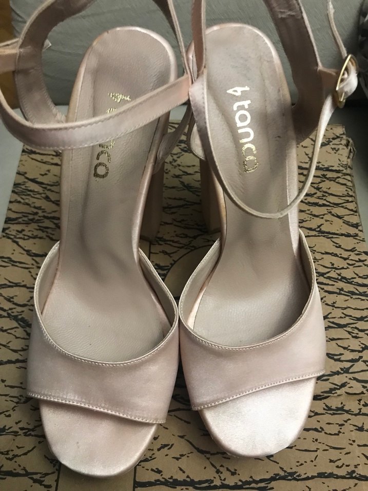Satenimsi pudra rengi, tokalı kayışlı blok topuklu abiye ayakkabı. 2 veya 3 kez kullanıldı, hafif lekeler ve parmak izleri var, çok yakından çekerek fotoğraflarda gösterilmeye çalışıldı. 37 numara, Tamer Tanca markalı.(Listede Tamer Tanca olmadığından Kemal Tanca olarak işaretlenmiştir) . Satın almadan önce fotoğrafları inceleyin ve sorularınız İçin iletişime geçin lütfen.# İADE KABUL ETMİYORUM #İADESİZ SATIŞTIR