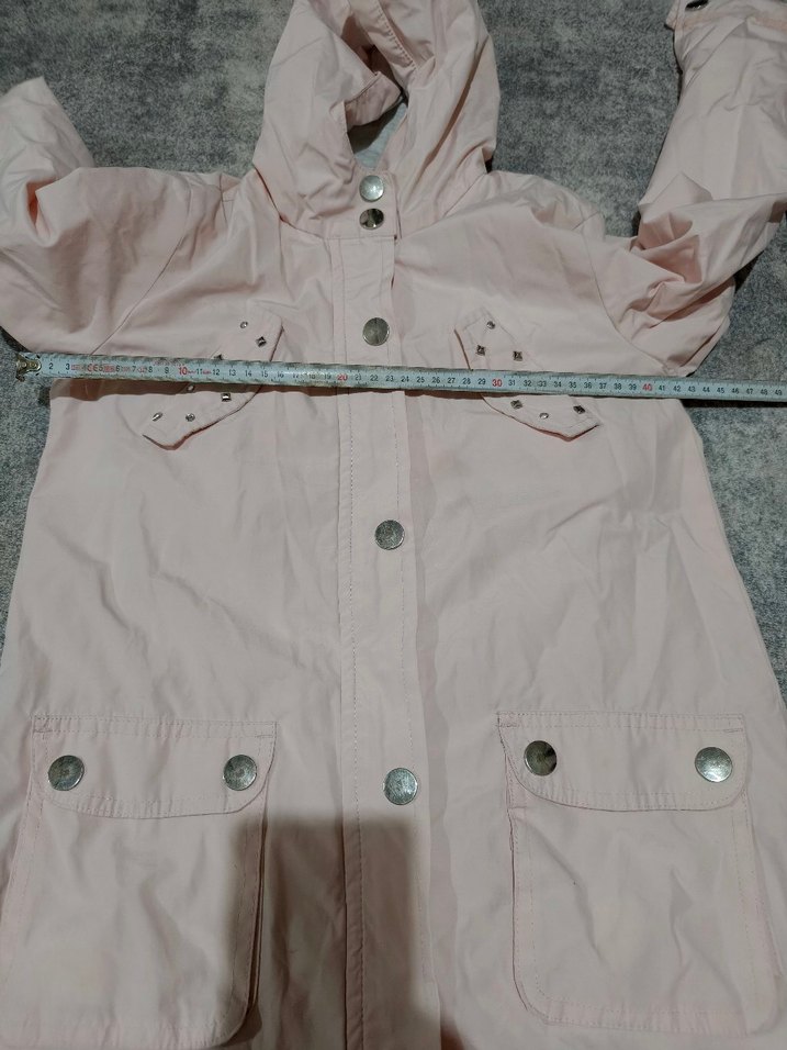 10_11 yaş Pudra renkte, düğmeli ve kesik yakalı midi uzunlukta, bol kesim kadın mont. Sentetik kumaştan, uzun kollu ve sokak stiline uygun dış mekan kullanımı için tasarlanmıştır.