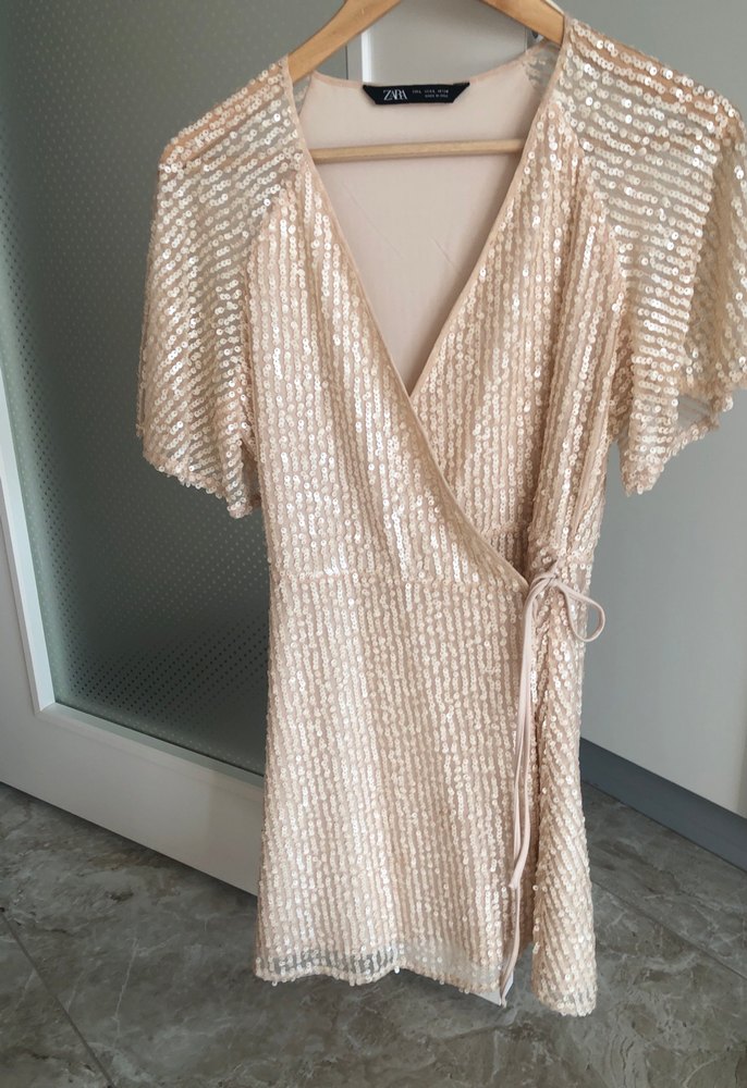 Zara çok şık kruvaze PAYET elbise m bedene uygundur
