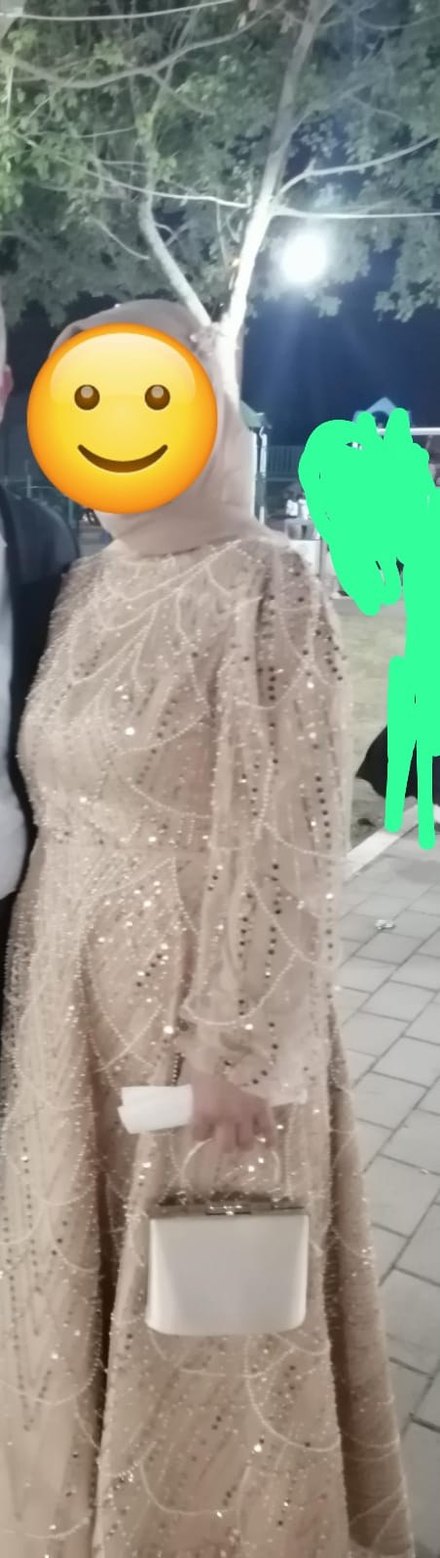 Pudra renkli Nakışlı Uzun Kollu Uzun Abiye Elbise tesettür abiye