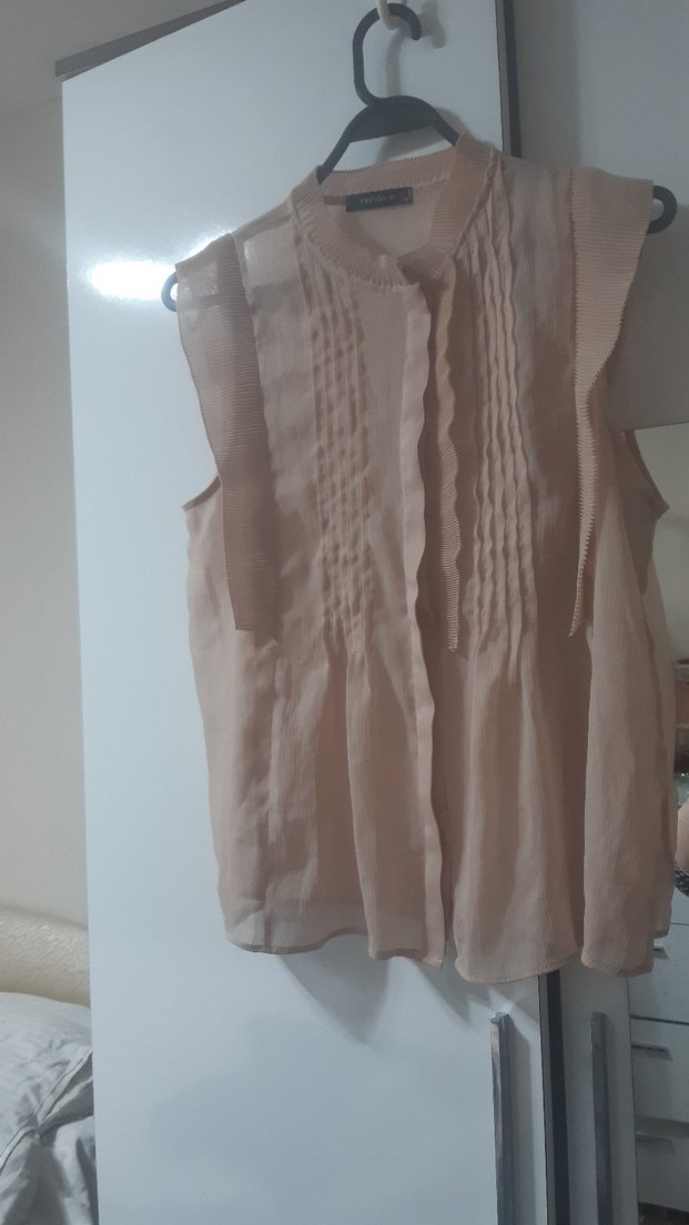 yumuşak kumaştan yapılmış kolsuz bluzu. Pliseli detayları, askısız yakası ve bol kesimi ile ofis için bohem tarzda uygundur.