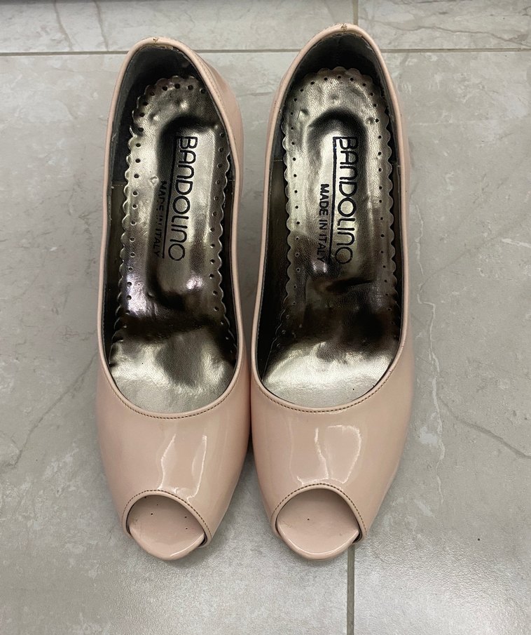 Parlak pudra renkli, peep-toe tasarımlı kadın stiletto. Kauçuk tabanlı, klasik zarafet taşıyan ve günlük kullanıma uygun pastel tonlarda. 1 kere giyildi sadece