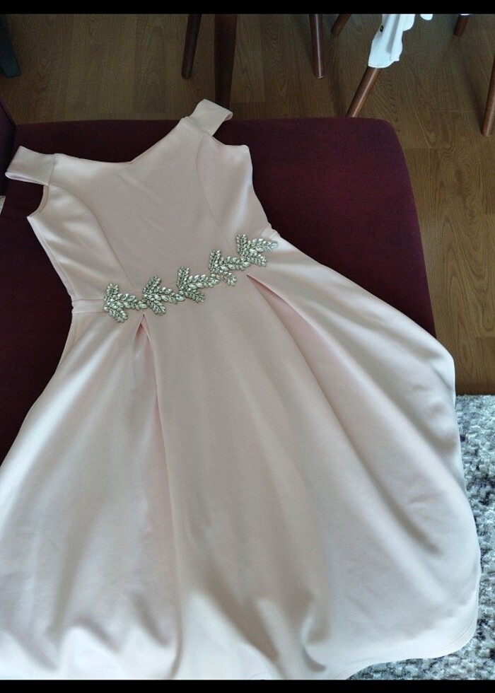 Pudra/Somon arası çok hoş bir davet elbisesi