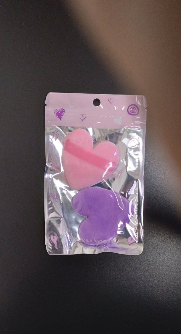 mor ve pembe renklerde kalp şeklinde pudra süngeri