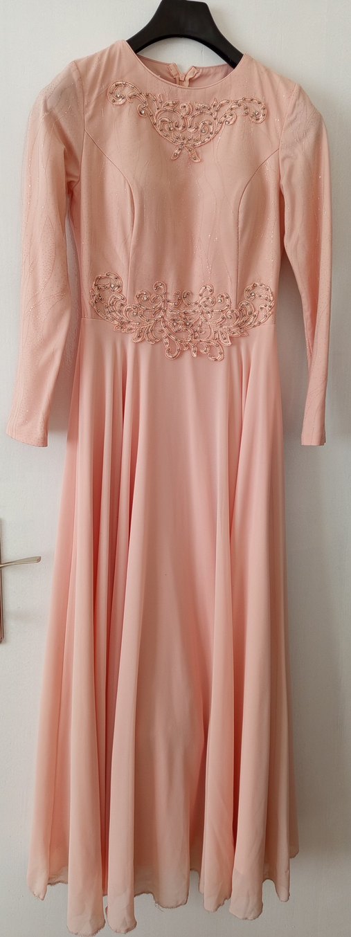 Pudra Uzun Kollu Drapeli Uzun Abiye Elbise