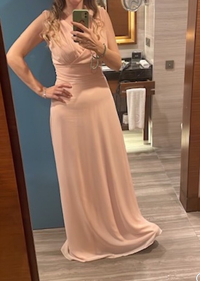 38 beden sadece 1 kez düğünde giyilmiştir , sağlam hasarsız arkası fermuarlı V yaka Pudra tuvalet boyum 1.67 göğüs 80 B