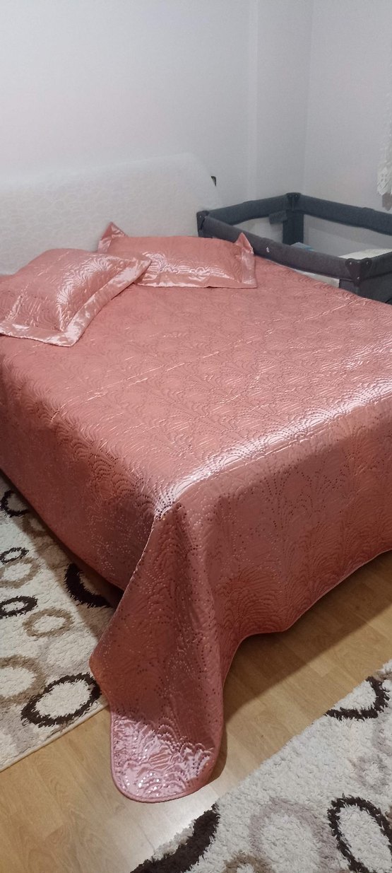 canlı bir pudra pembesi pullu çift kişilik battal boy yastık kılıfları dahil