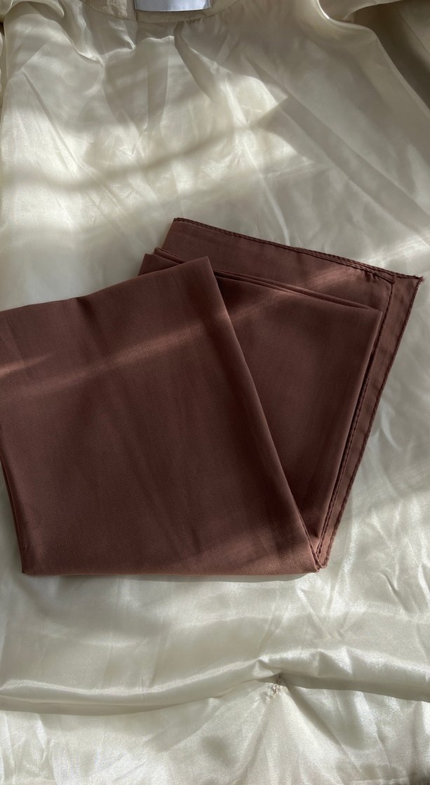 Koyu pudramsı, dokulu, drapeli tasarıma sahip minimalist ve çağdaş kadın şalı.