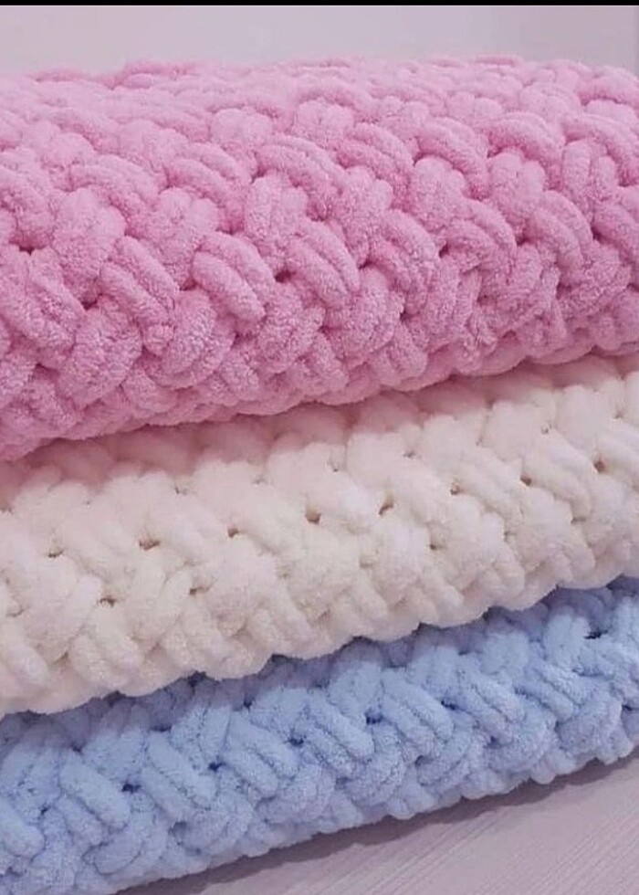 Her renkten örülür. TV battaniye olarak da kullanılır. Yenidoğan için uygundur. 90×90 ebatlarında başlayıp 150×150 ebatlarına kadar çıkabilir
