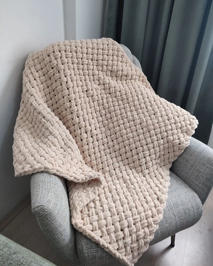 istenilen renk ve ölçülerde örülür Yumuşak örgü bej renkli, dokulu desenli çocuk battaniyesi, konfor sağlar.