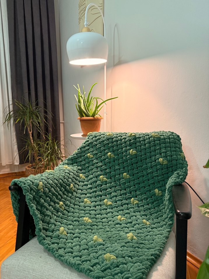 yeşil renkte, örgü çocuk battaniyesi. Yumuşak hiç kullanılmadı 90x90 ölçü