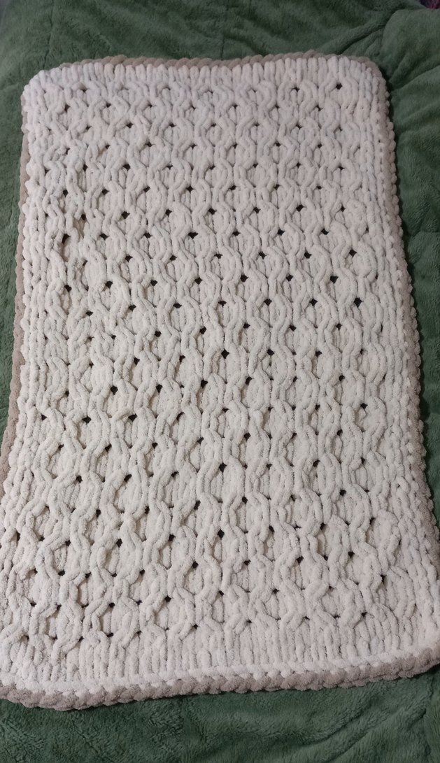 İstediğiniz renkte kendim örüyorum. Kalpsiz ve kenar işlemesiz de örebilirim. Bebekler için yumusacik ve sıcacık Ölçüleri; en 65 uzunluk 105.