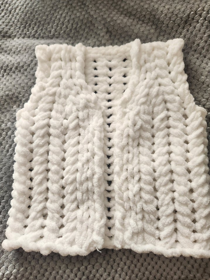 Beyaz Renk Bebek Yeleği . %100 mikropolyester puffy ip ile el örmesidir. Sıfır ürün. 28 cm tek bir ön. boy 30 cm boyunda.