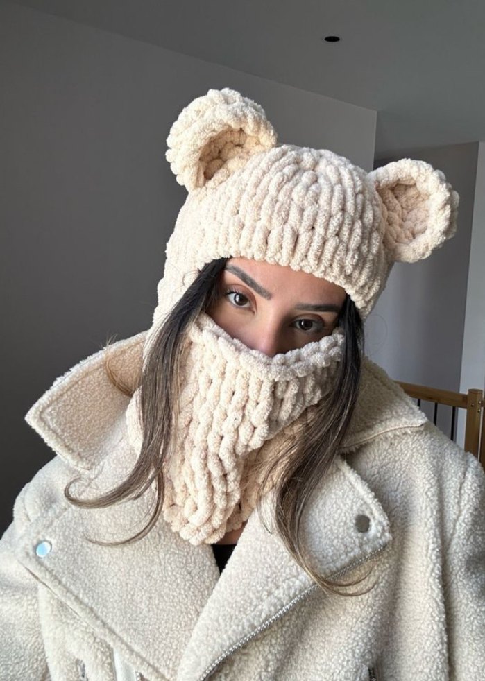 Puffy beyaz kulaklı balaklava