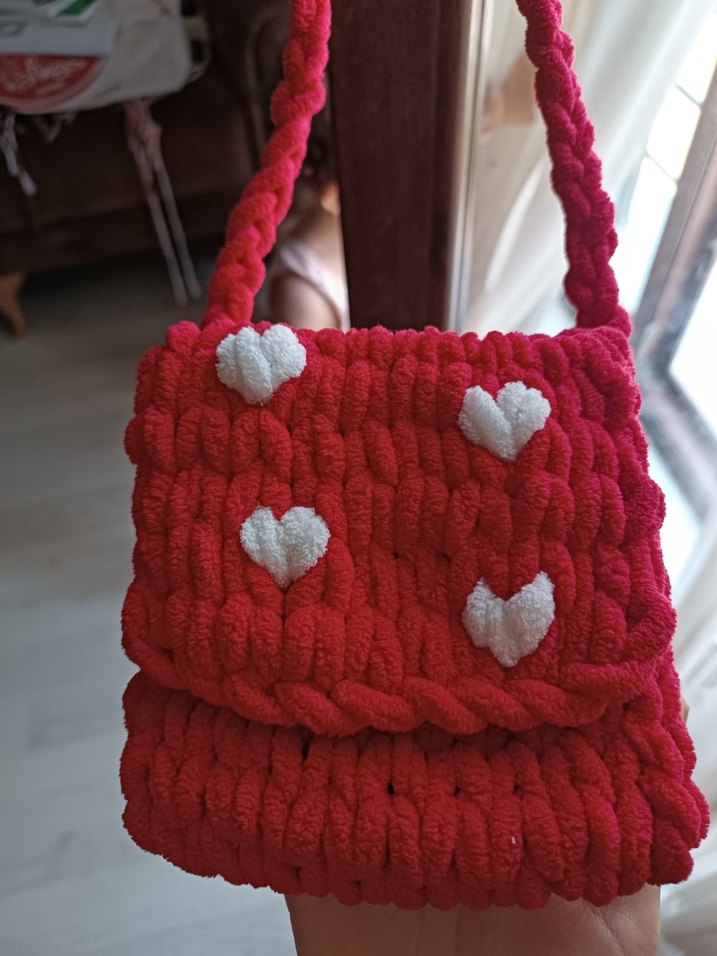 Beyaz kalp detaylı, örgü kırmızı çocuk çantası. Örgülü askıya sahip ve bohem tarzındadır. Günlük kullanıma uygundur. Puffy fine ipinden yapılmıştır Sipariş üzerine her rengi hazırlıyoruz