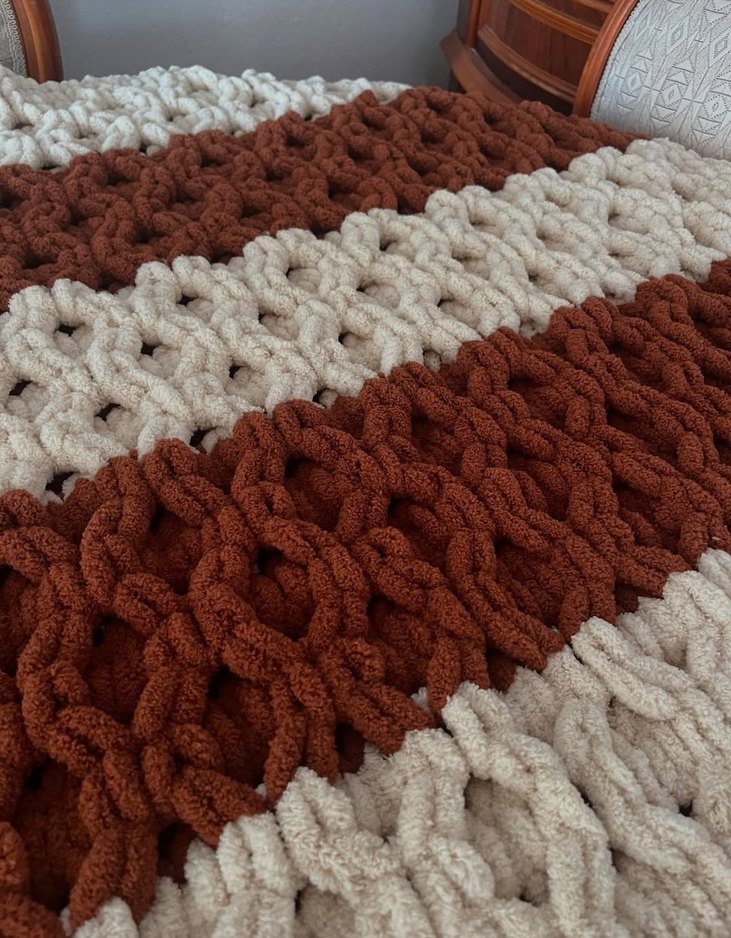 SİPARİŞ ÜZERİNE HAZIRLANIR. İstediğiniz renk ve motif ile kişiye özel yapılır. Kahverengi ve gri renklerde, yumuşak örgü kumaştan yapılmış, dokulu desene sahip çocuk battaniyesi.