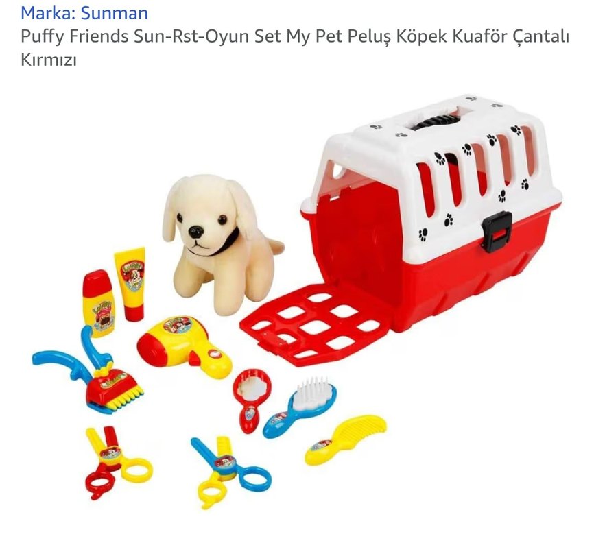 Puffy Friends Sun-Rst My Pet Peluş Köpek Kuaför Oyun Seti, çocukların hayal gücünü geliştiren eğlenceli ve öğretici bir oyuncaktır. Sevimli peluş köpek ve kuaför aksesuarları sayesinde çocuklar kendi pet kuaförlerini kurarak keyifli vakit geçirir. Taşıma çantalı tasarımı sayesinde oyuncaklar kolayca toplanır ve her yere rahatlıkla götürülebilir. Rol yapma oyunlarını seven çocuklar için ideal bir settir.