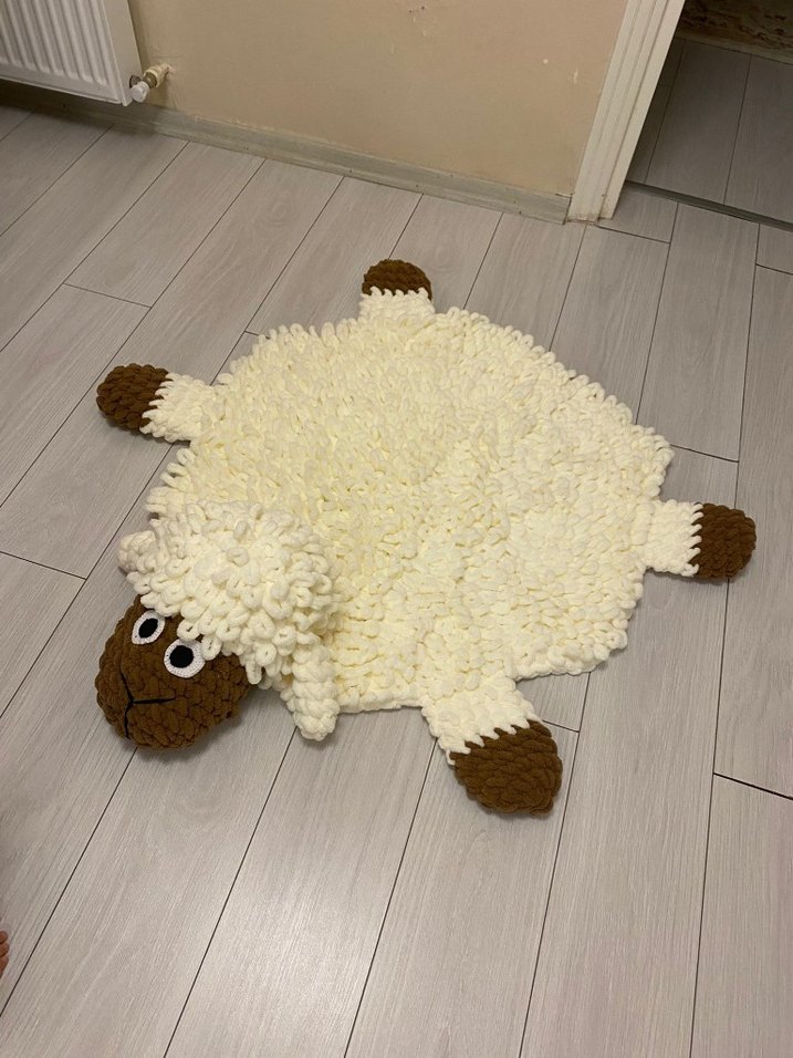 Yumuşak dokulu, açık kahverengi kuzu şeklinde peluş oyuncak. Koyu kahverengi ayaklar ve yüzü, işlenmiş gözleri bulunur. 80 cm