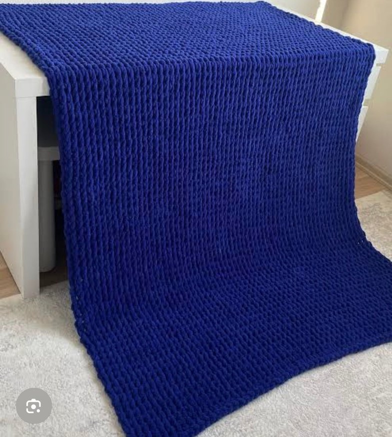 Lacivert örgü dokusuyla, desen içermeyen bu battaniye yumuşak ve sıcak tutar.