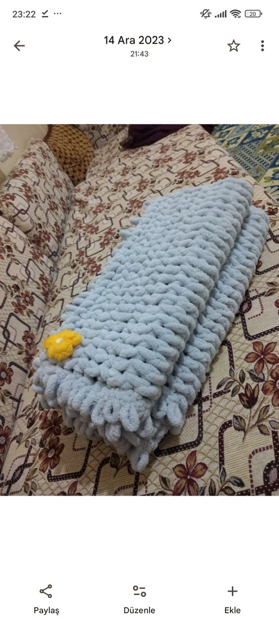 Yumuşak örgü kumaştan gri çocuk battaniyesi, sade tasarımlı ve küçük sarı çiçek detayıyla sıcak tutar istenilen renkte örülür papatya deseni kalp deseni kenar süslemesi istenilen süsleme yapılabilir.