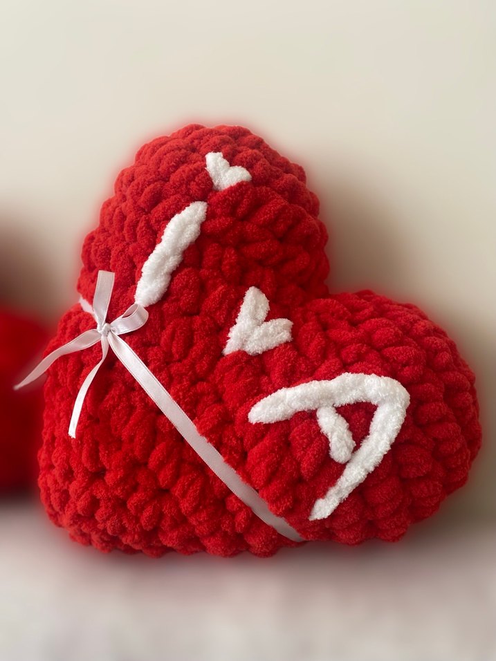 Puffy orta boy harf detaylı kırmızı renkte kalpli yastık