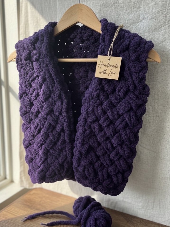 En tatlı hediye seçeneği! Yakınlarınızın yeni doğan bebekleri için hem kalıcı hem de çok özel bir el emeği arıyorsanız, bu mor pofuduk yelek harika bir tercih.