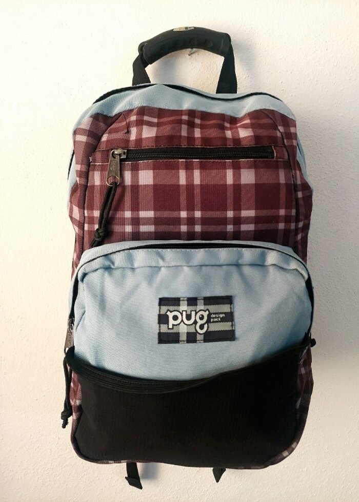 PUG unisex ekoseli sırt çantası