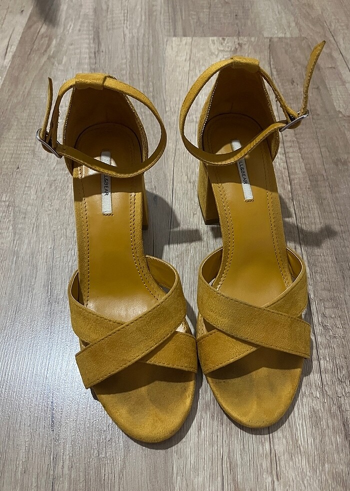 2-3 kez giydim. Ayağımı sıkıyor o sebeple satışta. Topuk boyu 6 cm. Hardal rengi.
