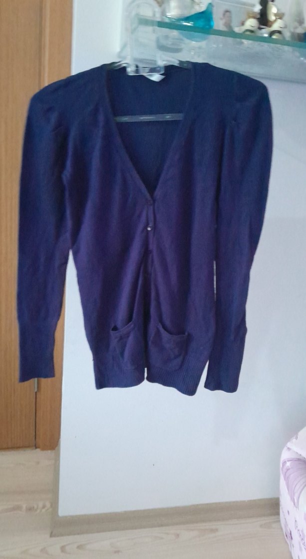 lacivert renkli, yün kumaştan uzun kollu, düğmeli ve cep detaylı midi uzunlukta kadın hırkası. Rahat ve günlük kullanıma uygundur. markalı. kaliteli. küçük bir ezilmesi var fark edilmiyor fiyata yansıdı