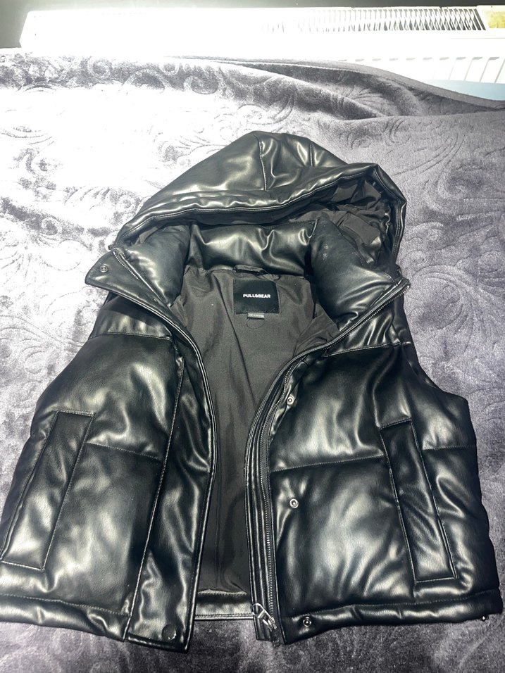 Pul&bear Siyah Deri Kolsuz yelek - Görsel 3