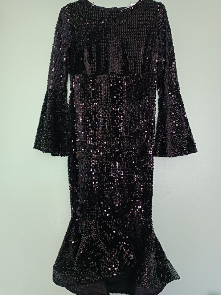 Siyah pul payet işlemeli,balık model,esnek kumaşa sahip,yeni abiye elbise.