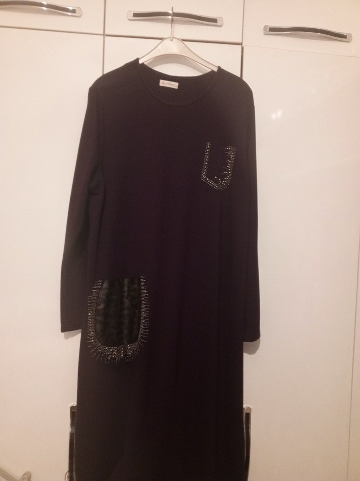 mor uzun tunik , uzun kollu ve bol kesimdir. Bisiklet yaka ve pul detaylı cepleriyle günlük kullanıma uygundur.