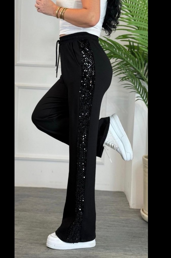 Pul işlemeli yan detaylara sahip, bol kesim siyah eşofman Rahatlığı artıran lastikli bel ve bağcık içerir. Hiç kullanılmamış üründür ✨